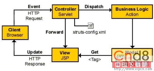 Struts是Apache 基金会Jakarta 项目组的一个Open Source 项目,它采用MVC模式,能够很好地帮助Java 开发者利用J2EE开发Web应用。和其他的java架构一样,Struts 也是面向对象设计,将MVC模式"分离显示逻辑和业务逻辑"的能力发挥得淋漓尽致。StrUCts 框架的核心是一个弹性的控制层,基于如 Java Servlets,JavaBeans,ResourceBundles与XML等标准技术,以及 Jakarta Commons 的一些类库。Struts有一组相互协作的类(组件)、Serlvet以及jsp tag lib组成。基于struts构架的web应用程序基本上符合JSP Model2的设计标准,可以说是一个传统 MVC设计模式的一种变化类型。