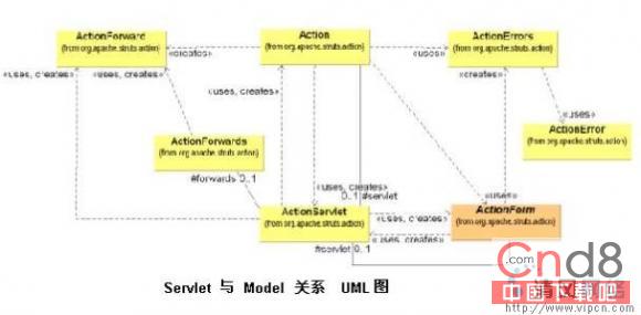 上图3显示了 ActionServlet (Controller)、Actionform (form State) 和 Action (Model Wrapper) 之间的最简关系。