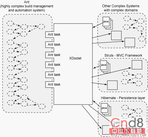 在图 4 中,您可以看到 XDoclet 与以下内容是紧密相关的: