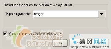 在Type Argument中指定一个数据类型,JBuilder已经通过分析代码默认了最适合的数据类型,一般情况下无需调整。按OK后完成泛型的代码重构: