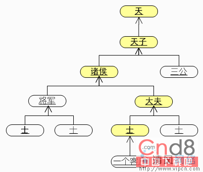 当一个百姓提出要求时,此要求会传达到“士”一级,再到“大夫”一级,进而传到“诸侯”一级,“天子”一级,最后到“天”一级。