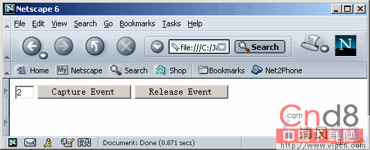 使click事件被捕捉需要调用captureEvent()方法,而使click事件不被捕捉需要调用releaseEvent()方法。下面是具体的html和javascript代码。