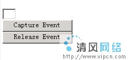 在这个例子里,有一个textbox和两个button,一个叫做“Capture Event”,单击后会使网页的click事件被捕捉,文字框中的计数会加一;另一个叫做“Release Event”,单击后会使网页的click事件不被捕捉。
