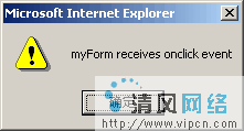 当myButton的onclick事件发生时,myButton的事件处理首先被激发,从而显示出如下的对话窗