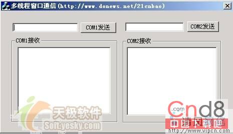 下面我们用第1节所述API实现一个多线程的串口通信程序。这个例子工程(工程名为MultiThreadCom)的界面很简单,如下图所示: