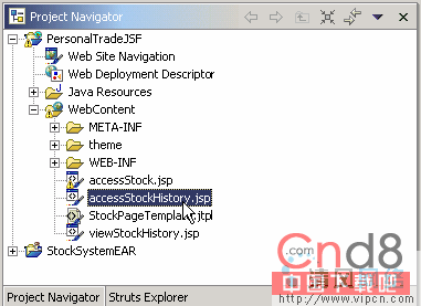 从 Project Navigator 中,打开 accessStockHistory.jsp。
