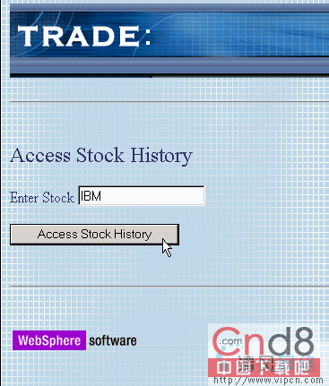 在服务器启动并且浏览器呈现表单时,在空白区输入 IBM,然后按下 Access Stock History (图 40)。将显示股票历史数据(图 41)。