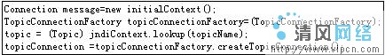 用JDNI来定位一个Topic,Topic用于识别发送或接收的消息,在发布/订阅系统中。订阅者订阅一个给定的Topic,而发布者将它发布的消息与一个Topic相连。