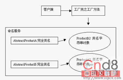 接受抽象产品类的完全类名,查询目录服务得到具体产品类的完全类名,采用JAVA的CLASS为第一类对象的机制创建相应类的对象。