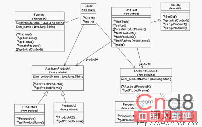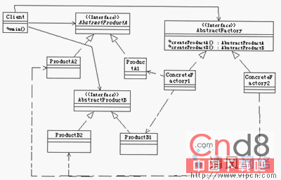 抽象工厂模式的本意要求我们创建具体产品对象时,客户端不能暗示任何具体产品对象类型的信息。但是通过分析模式的通信接口可知,客户端可以告诉工厂类这些具体产品的父类。关于模式提到创建一些互相依靠的对象的本意,我们可以在目录服务的目录库中实现。图8、图9分别定义了这样的产品族关系。