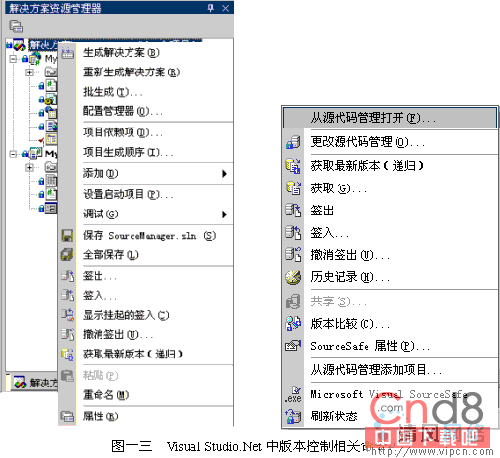 在Visual Studio.Net开发环境"解决方案资源治理器"的上下文菜单或者"文件"――中有如下与文件操作有关的命令,如图十三所示: