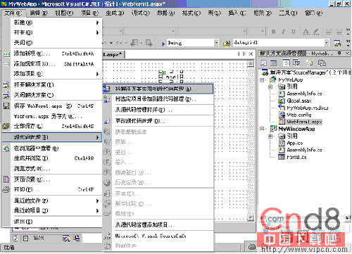 这样就在解决方案中建立了一个Window应用程序和一个Web应用程序。下面讲述如何将整个解决方案加入到源代码版本控制。