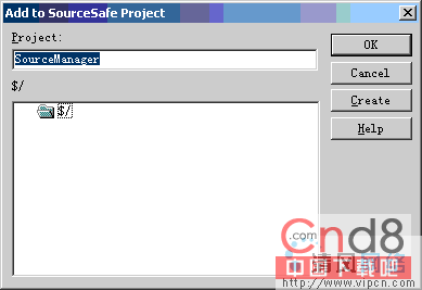 8、 首先会弹出一个保存解决方案的提示窗口,让你选择将要保存到SourceSafe中的项目名称,默认与解决方案的名称相同。点击OK,会得到项目在数据库中不存在的提示,点击"Yes"创建该项目。