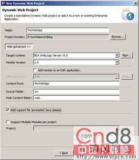 我们将通过New Project Wizard(新项目向导)创建一个WTP Dynamic Web项目。并对该项目加以调整,以便支持Apache Beehive。打开Project Wizard,然后利用以下信息填写Wizard中的相关值: