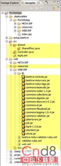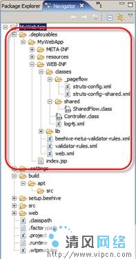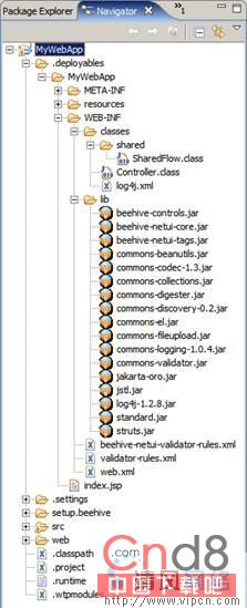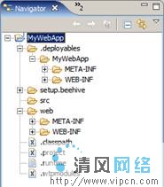 现在,我们已经快要在Eclipse中完成一个自构建的Beehive项目了。让我们看一下.deployables文件夹的内容。记住,您需要在Navigator View中进行查看。.deployables文件夹内容如下所示: