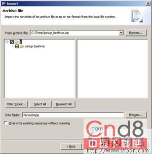 所提供的Beehive Support Ant构建文件位于一个zip存档文件中。有两种方法可以将该文件的内容导入新的Web项目: