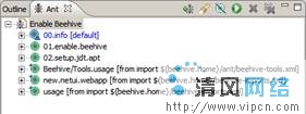 现在,Beehive Support Ant构建文件已就绪,我们可以将setup.beehive/build.XML文件添加到Ant View,这样一切都预备好了。您会看到如下界面: