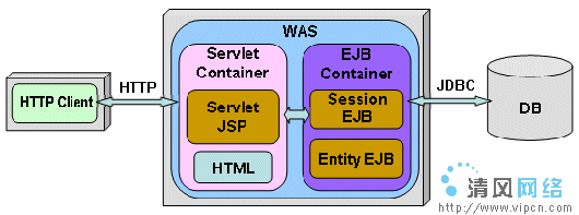 在分离容器(Separate Containers)拓扑中,J2EE 应用程序的 Web 部件与 EJB 通信的惟一方法是通过远程接口(一般是通过 Internet Inter-Orb Protocol(IIOP))。(在本文中,我们不讨论 Web 或 HTTP 服务器的分离,因为它不是我们关注的要点)。