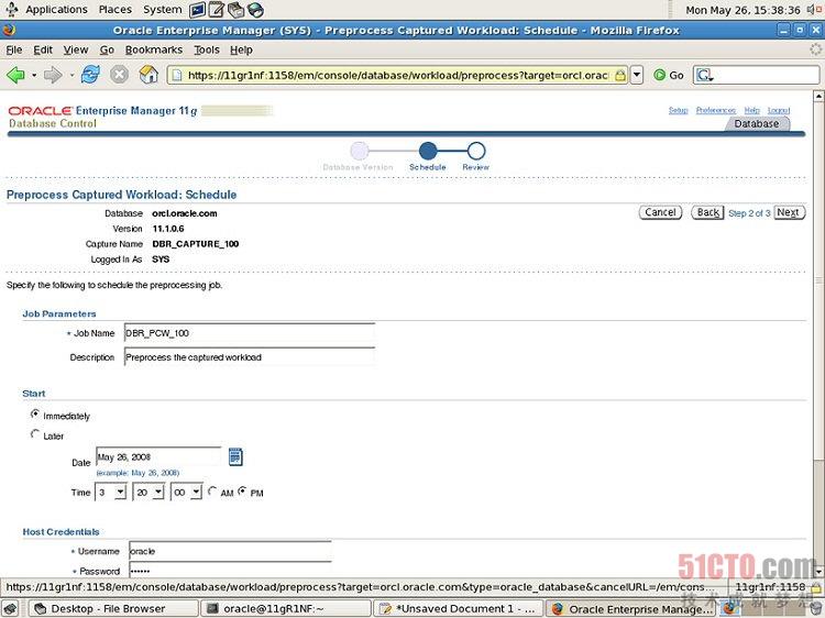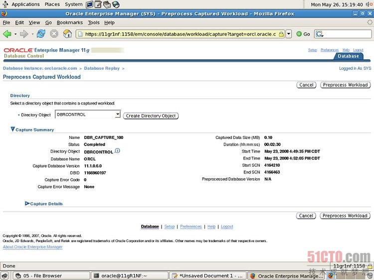 至此,我的p+1工作环境搭建好了,可以开始为重放做一下负载预处理了,再说一次,我会使用EM数据库控制台启动预处理序列,图2.3.1显示了从“数据库重放”面板选择了“预处理负载”后的结果。