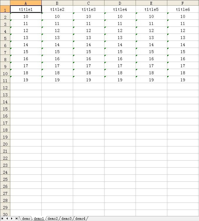 $xls->addHead(array("title1","title2","title3","title4","title5","title6"),"demo1");
