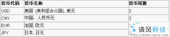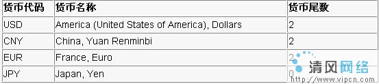 货币代码永远是上面所看到的英文代码,但是货币名称应当根据用户所选择的语言不同而不同。比如对中文读者就应当翻译成为下面的表: