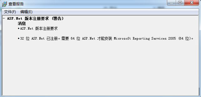 32位的ASP.Net已注册,需要64位的ASP.Net才能安装Microsoft Reporting services 2005 (64位)。