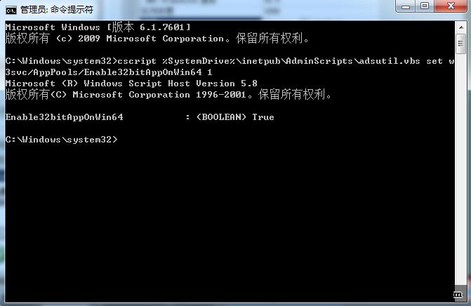 1、cscript C:\inetpub\adminscripts\adsutil.vbs SET W3SVC/AppPools/Enable32bitAppOnWin64 1