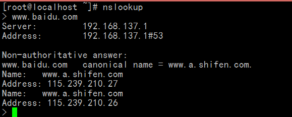 嗯,非常好,我们的百度域名能够正常的解析,由于域名解析需要连网到DNS服务器,现在能够看到解析,这就表示,我们的Linux已经能够连网,具有网络访问的能力了。