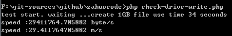 使用php写入一个1GB大小的文件,检查硬盘的写速率,可能有一定误差,建议还是使用专业的硬盘测试工具来检测一般电脑读写在20M/s,这个测试要执行大概40-50s