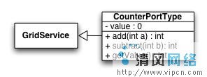 在网格 portlet 示例中,我们使用 Globus Toolkit 提供的示例 OGSI 计数器服务编写一个简单的加减数字的 portlet。计数器服务表示为 CounterPortType,它是基 GridService 接口的子类,有三个方法,如下面的图 2 所示: