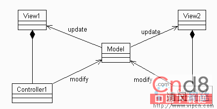 图4一个模型、两个视图和一个控制器的基本结构