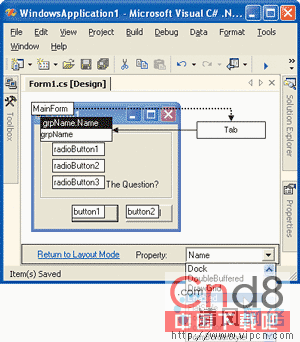 另一个新特性, 编辑属性模式, 答应你用Tab键遍历控件并在页面上直接改变它们的属性。首先在Windows窗体设计器的上下文菜单中点击选择与其同名的菜单项使编辑属性模式被激活。下一步就是遍历控件并按照你的要求修改属性。过程如Figure 2所示。编辑完成后,点击“返回布局模式”回到正常的编辑模式。设置属性是一个改变控件的简便方法。用另外一个更合适的控件来完全替换当前控件可不轻易,你需要删除这个控件,然后将一个新控件拖入窗体并重新配置它。应付像这样复杂的多步设计任务,智能标记正好派上用场,它将设计时的多步任务合并为一步,并在相关控件四周显示菜单项图标作为其标记,智能标记也可以处理简单的设计时任务,这经常会发生,例如在将一个文本框拖放入一个窗体时改变它的"Text"属性。