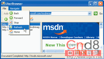 集成开发环境的另一项改进是Visual Studio 2005中的Windows窗体提供了新的控件,并改进了广受欢迎的旧控件例如文本框和复合列表框。Figure 3显示了一个用新增控件和使用中的改进控件创建的小型浏览器,创建他们所需要的代码比在Windows窗体的上个版本中要少。