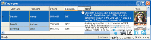 与DataGrid相比具有显示更多种类数据的能力,新增了一组更加丰富类型,包括图像。诸如冻结列(与Excel中的相似)这样的出色特性和运行时列的重新排序(与Outlook中的相似)。