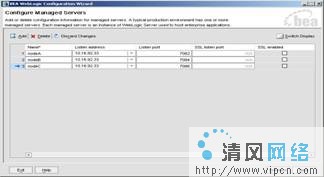 输入Managed Server的名称,监听地址,监听端口,假如需要SSL支持的话,可以在“SSL enabled”复选框上打勾,配置SSL监听端口。可以配置多个Managed Server。单击“Next”按钮
