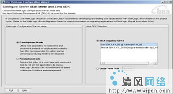 选择“Development Mode”模式,并选择标准的Java SDK 1.4,在开发模式下会有比较丰富的调试信息,对我们很有帮助,单击“Next”按钮