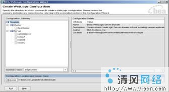 系统列出您的配置信息,并指定了缺省的安装路径(D:eauser_projectsdomainsmydomain),在此我们将安装路径定位在D:eauser_projectsclusterdomain,单击“Create”按钮