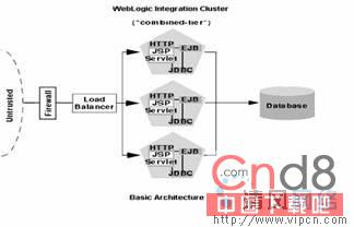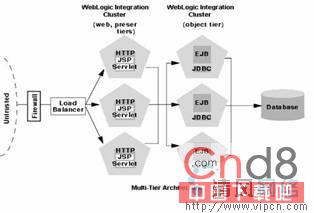 这种架构使用两个WLS集群,一个放置表静态内容和集群Servlet,另一个放置集群EJB。一般应用于下面这些情况: