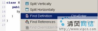 Find References项在选择对象后点击右键,出现“Find References”,选择后将在信息窗口中显示出来所有引用该对象的程序代码。下面我们查找一个引用main的所有程序代码: