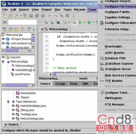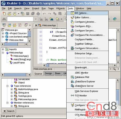可能你很习惯Windows风格的集成开发环境,也可能你喜欢Borland风格的集成开发环境,这些在JBuilder中都是为你量身定制的。我们现在就来体验一下不同风格的AppBrowser: