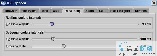 有些人总是抱怨编译器的执行时间很慢,耗费了太多的等待时间,而在JBuilder的IDE Options当中,为我们提供了执行时期与调试器的更新间隔调节。不过需要注重的是,假如执行时期与调试器的反应速度比较快,JBuilder就会占用大部分的CPU时间。