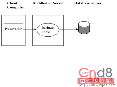 传统的三层结构克服了一些两层结构的弊端。三层结构将表达逻辑重商业逻辑中分离开。它将商业逻辑放于服务器上,只有表达逻辑是在客户个人计算机上进行配置。见图1•2: