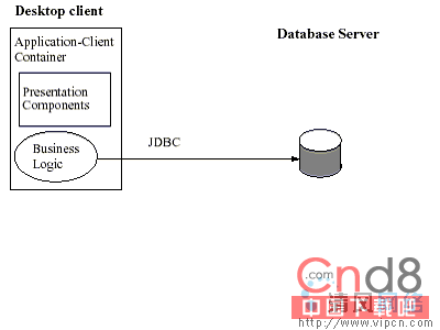 Java 2 平台,企业版也提供对两层和三层应用程序的支持。(注重:应用程序-客户端容器指的是Java 2 标准版程序开发环境。)图1•4表明了对两层应用程序的支持。