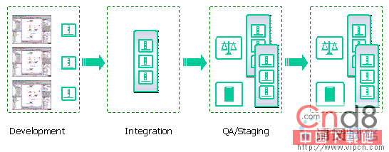 在典型的开发阶段,几个开发人员将同时为一个项目工作,每个开发人员从事不同的模块研究。这些开发人员可能拥有作为沙箱的自己的工作域(开发模式、带有本地数据库的单服务器),并且可以使用源代码控制工具来促进团队开发。在开发模式域中,BEA WebLogic Server和BEA WebLogic Workshop将自动供给一些应用程序资源,比如 Entity Bean表、AsyncDispatcher队列和会话状态表。在生产模式域中,必须显式供给这些资源。QA/分级测试环境通常会模拟真实的生产环境,该环境一般由一个或多个集群域以及一些专用的数据库服务器、负载平衡器和商业证书组成。安全性和高可用性在生产阶段很重要,因为它们可能是开发环境中完全缺乏的东西。此外,假如在生产阶段对托管服务器使用不同的IP地址或端口,那么还需要更新应用程序模块,为定制部署重新生成EAR文件。
