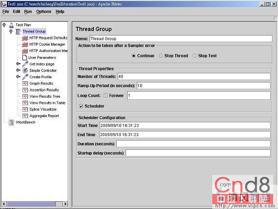 启动时间:立即或者预定的时间,假如是后者,线程组所包含的元素也要指定这个起止时间。