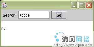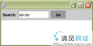 注重Go按钮看起来是被按下了。这是因为actionPerformed方法通知了按钮绘制为非按下外观,但是还没有返回。你也会发现要查找的字串“abcde”并没有出现在文本区域中。searchButton_actionPerformed的第1行代码将文本区域设置为要查找的字串。但是,注重Swing重画并不是立即执行的。而是把重画请求放置到Swing事件队列中等待Swing线程处理。但是这儿,我们因查找处理占用了Swing线程,所以,它还不能马上进行重画。