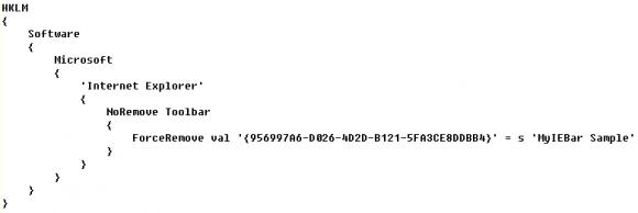 最后还要向IE注册我们的工具栏,以下是一个简单示例。