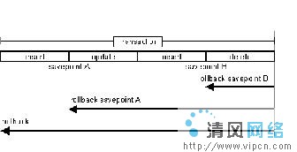 也许在 JDBC 3.0 中最令人兴奋的附加特点就是 Savepoint 了。JDBC 2 中的事务支持让开发人员可以控制对数据的并发访问,从而保证持续数据总是保持一致的状态。可惜的是,有时候需要的是对事务多一点的控制,而不是在当前的事务中简单地对每一个改变进行回滚。在JDBC 3.0 下,可以通过 Savepoint 获得这种控制。Savepoint 接口答应您将事务分割为各个逻辑断点,以控制有多少事务需要回滚。下图3 将说明如何在事务中运用 Savepoint。