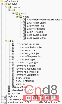 这个Login程序是一个简单的Struts程序,它将显示如何使用HTML标签库,尤其是和form相关的标签和用于错误处理的标签。其目录结构如图1中所示。