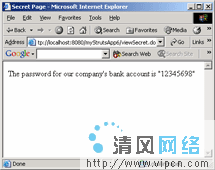 当用户注销时,他或她的session对象将失效,同时Longin页面会重新显示。当用户点击链接要查看公司机密时,会弹出viewSecret.jsp页面(见图4)。